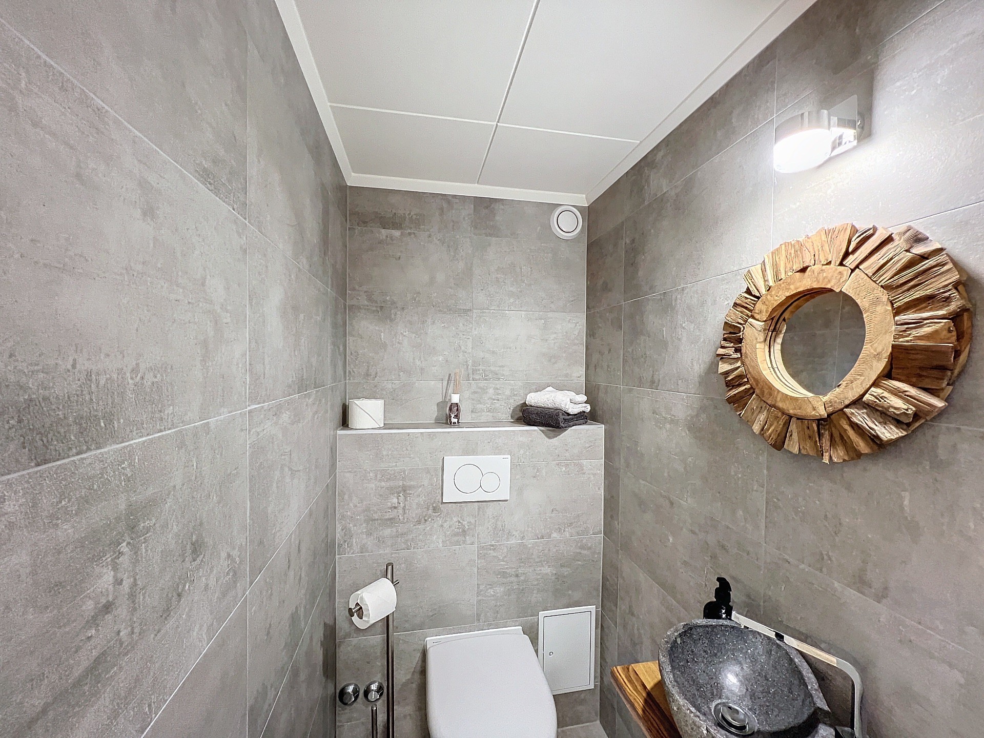 La chambre, spacieuse et sereine, offre un véritable cocon de tranquillité. Avec ses aménagements soignés et son atmosphère apaisante, elle constitue le refuge parfait pour des nuits reposantes. La salle de bain, chic et fonctionnelle, est dotée d'équipements modernes pour répondre à tous vos besoins.