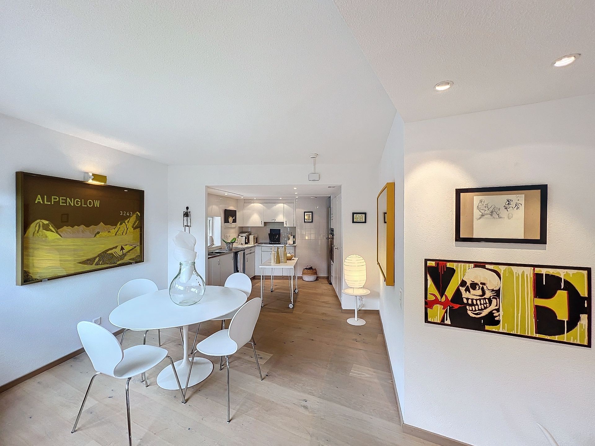 - Salle à manger élégante, parfaite pour accueillir des dîners somptueux avec vue sur les sommets enneigés.