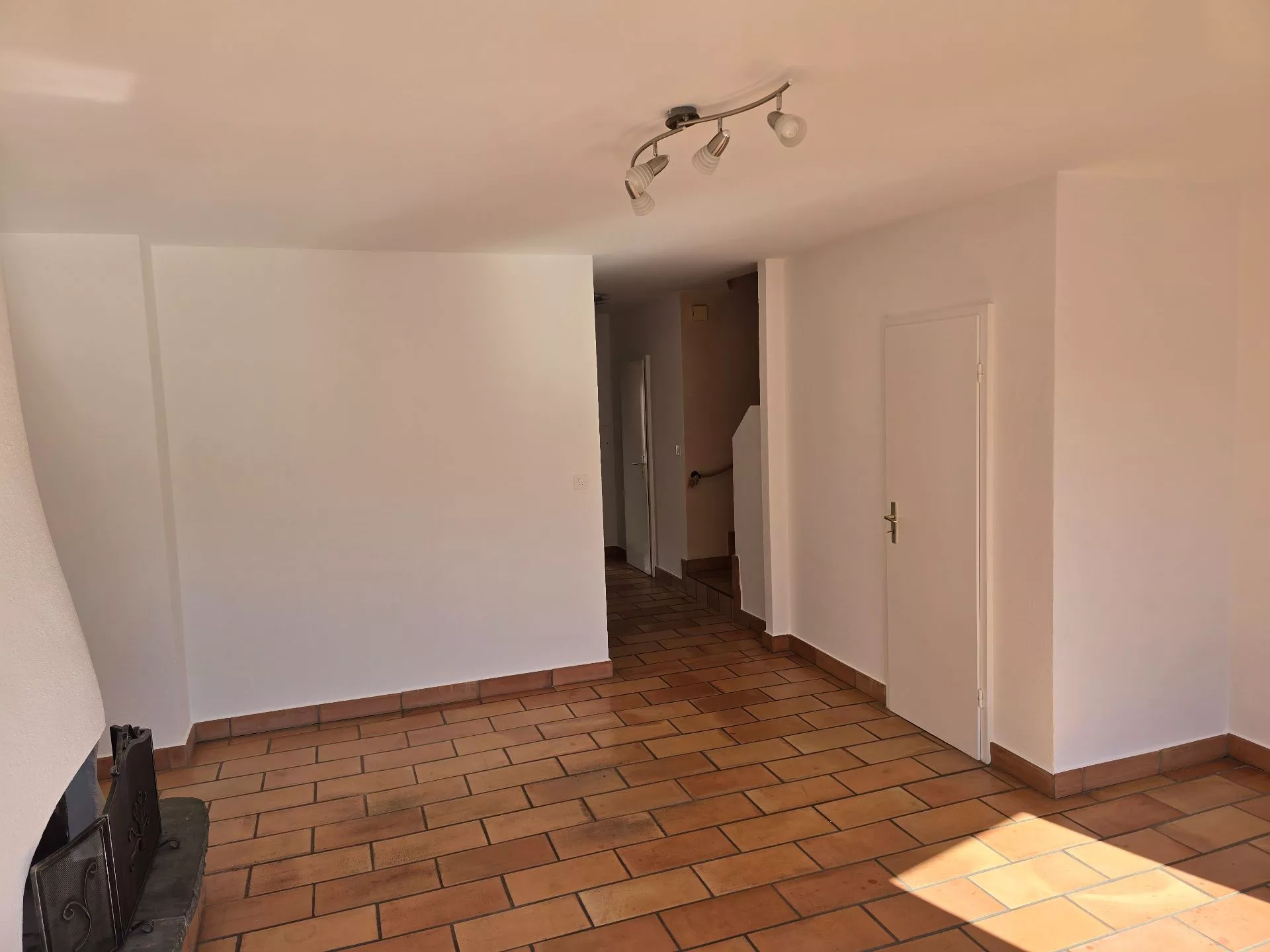 Grand séjour avec cheminée donnant accès directement à la terrasse
