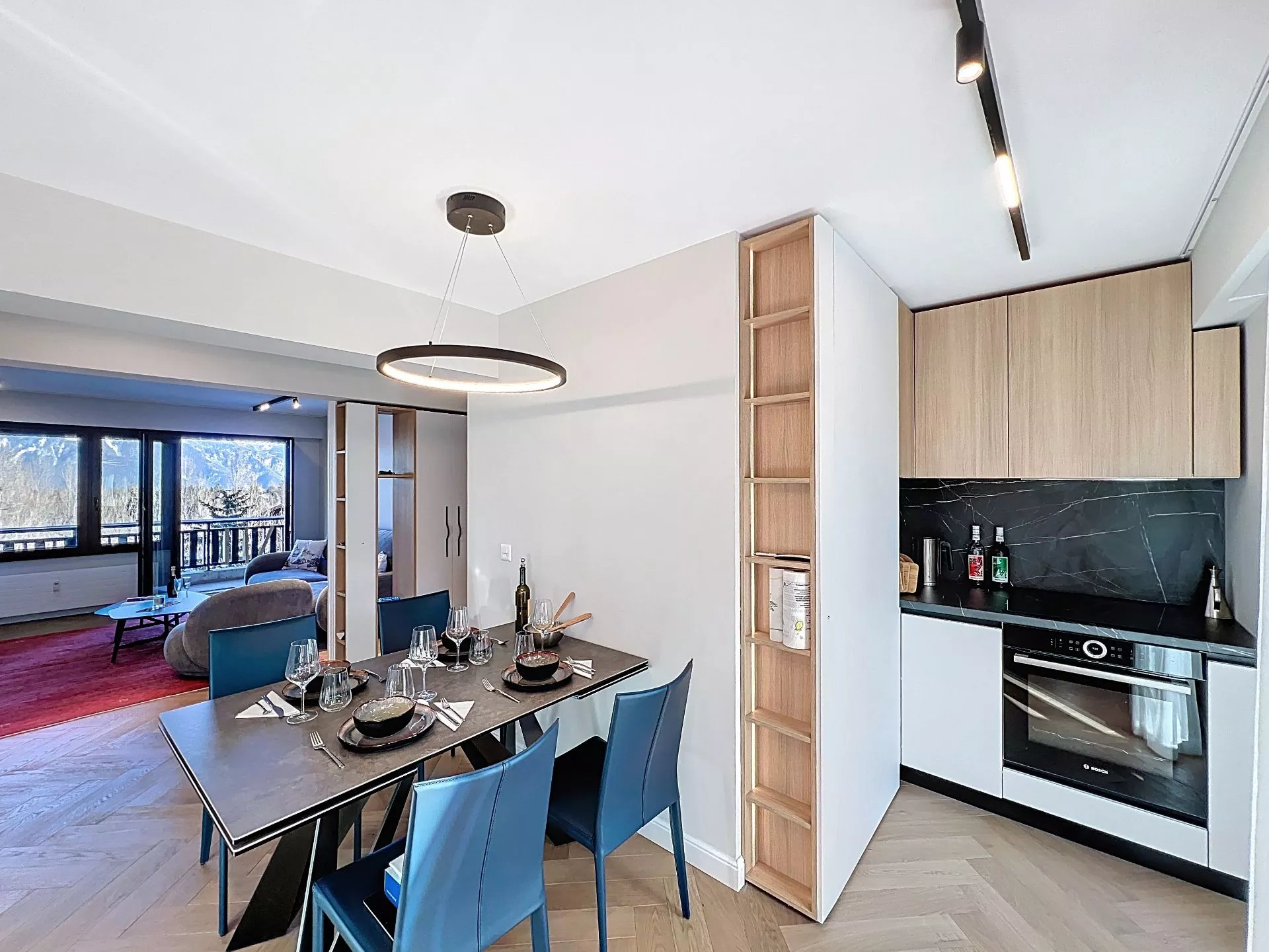 Profitez d'un vaste séjour baigné de lumière, ouvert sur deux balcons avec une vue sur les Alpes et les environs animés de la station.