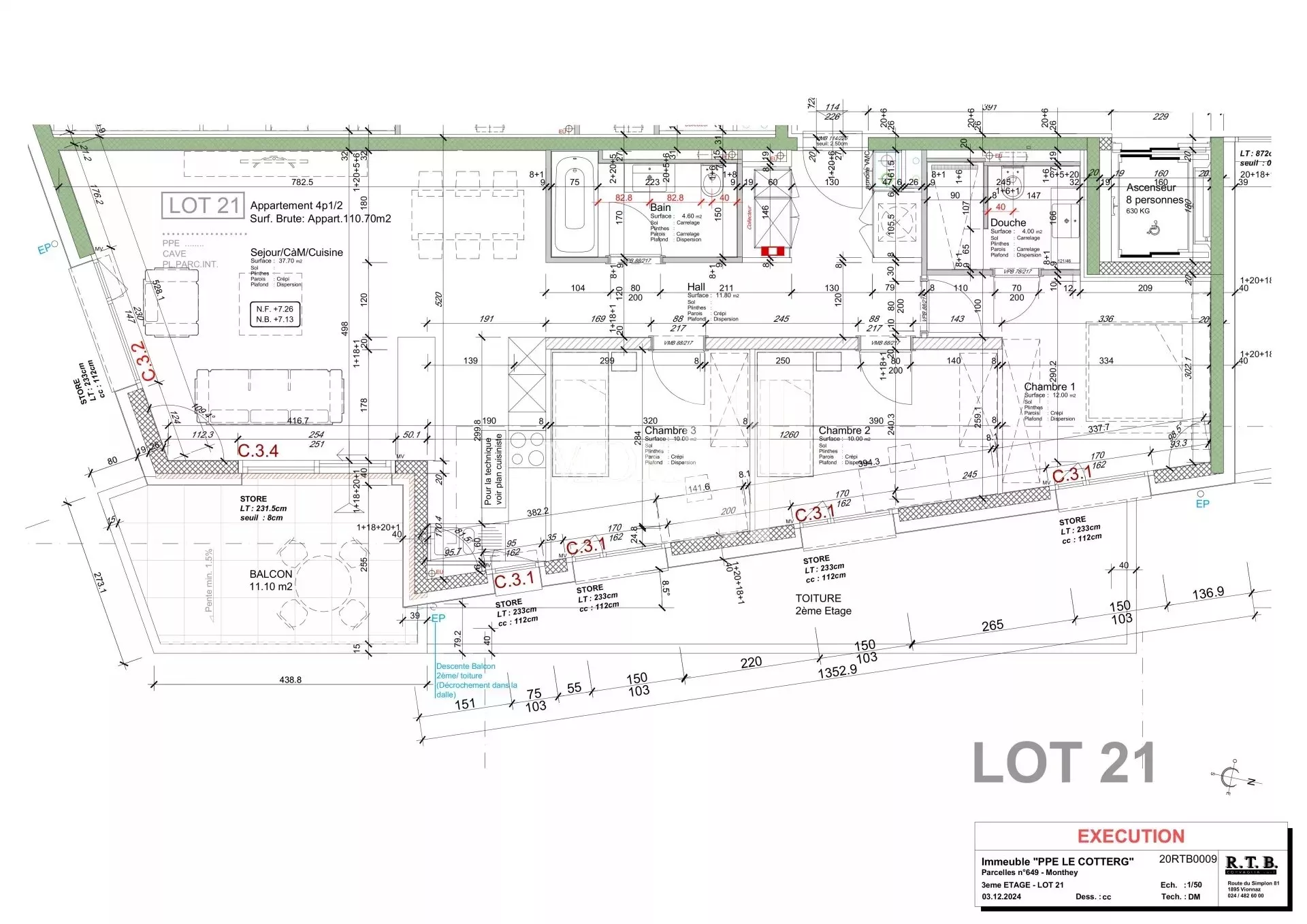 Loyer détaillé : Fr. 1'970.- loyer + Fr. 300.- charges à forfait + Fr. 130.- une place de parc intérieure