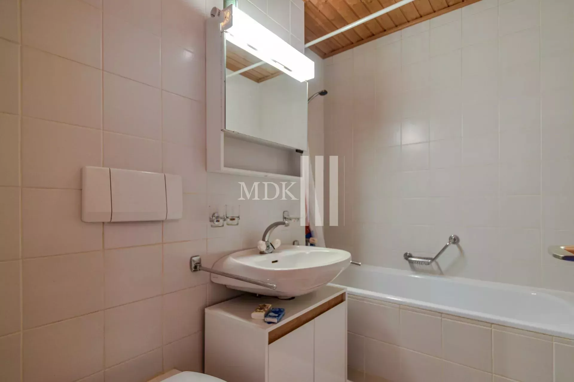 - Une salle de bains (baignoire, lavabo et wc)