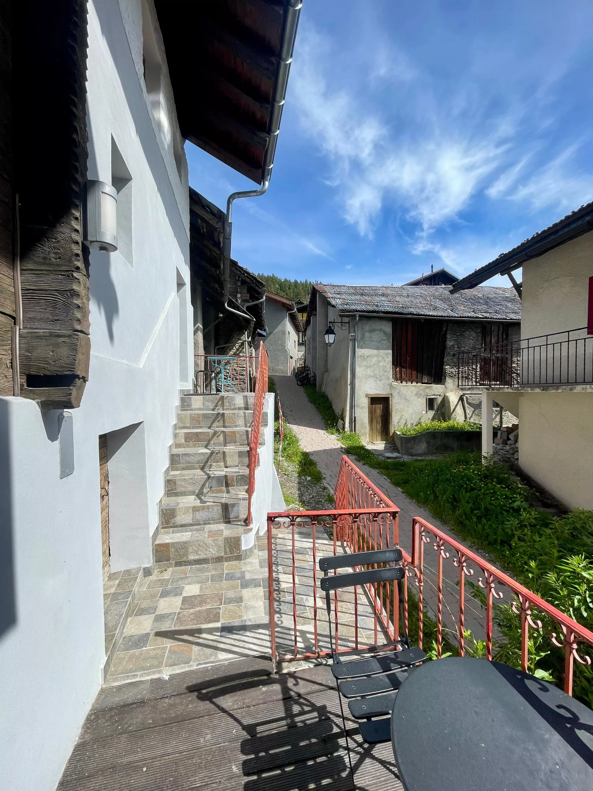 Accès par un escalier extérieur où vous profiterez aussi d'un petit coin terrasse à partager, puis escalier intérieur.