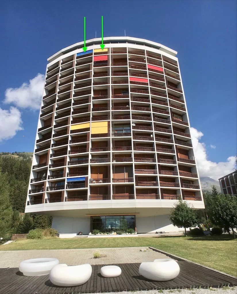 Ce superbe appartement de 105m2 est situé au 16ème étage de la Tour. Son exposition plein sud vous garantit un ensoleillement maximum et une vue unique sur la station de Crans-Montana et des principaux "4000" des Alpes. Son accès se fait par l'un des 4 ascenseurs qui dessert les étages. Le mode de chauffage de l'appartement est au sol + radiateurs. L'orientation des balcons est sud & ouest.