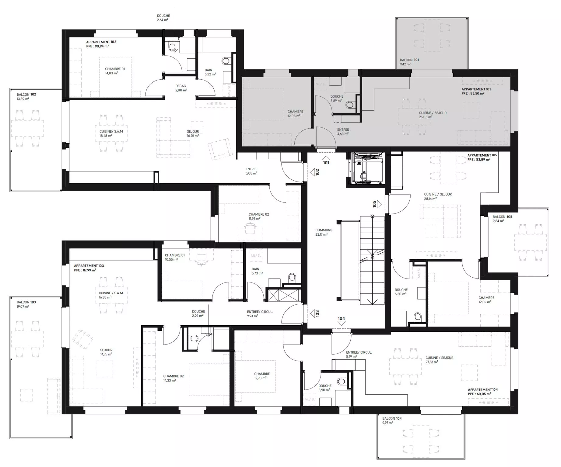 - Cave privative (6 / PPE 17) : 4,68 m²