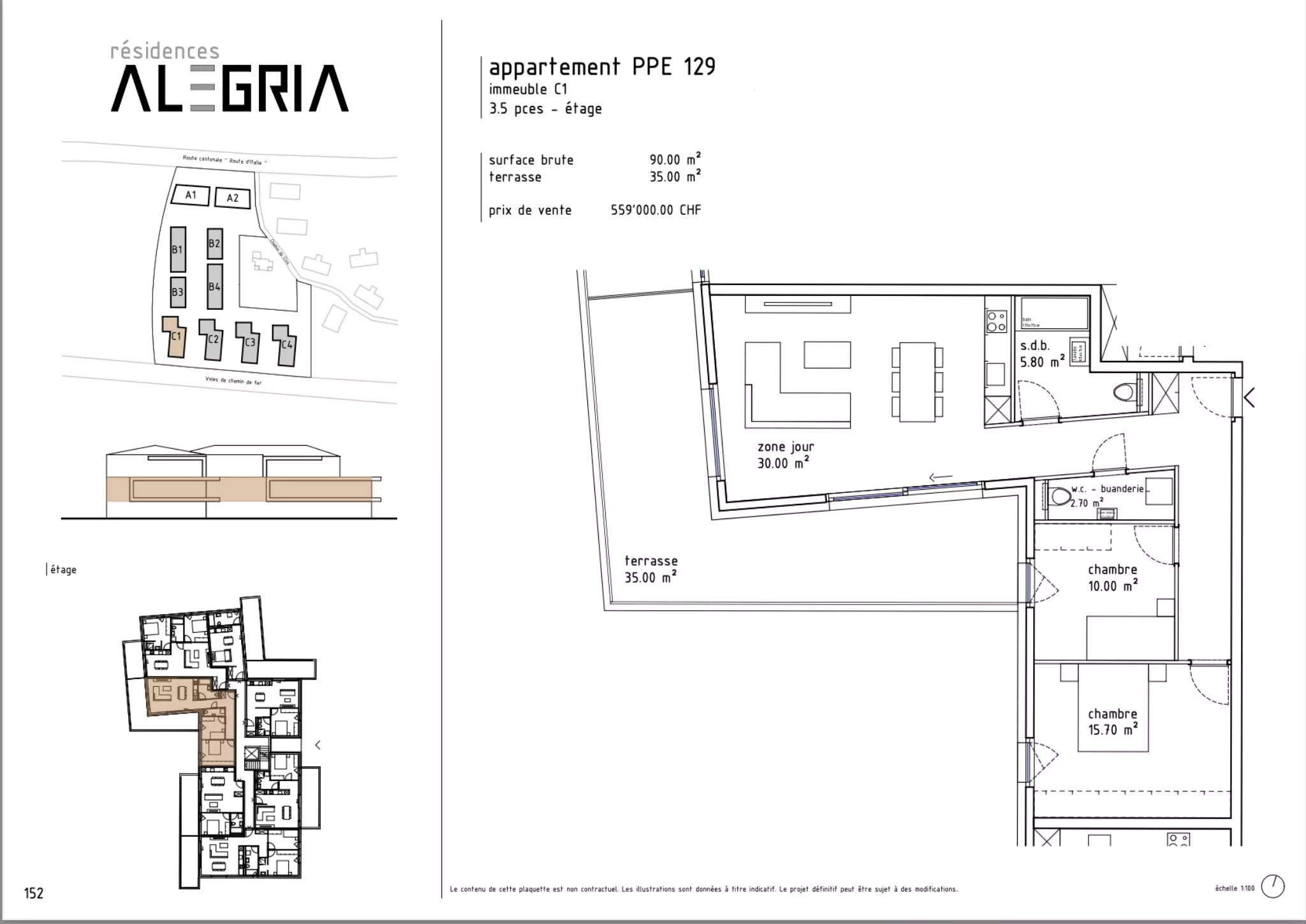 L'appartement numéro 129 entrée C1 bénéficie de :