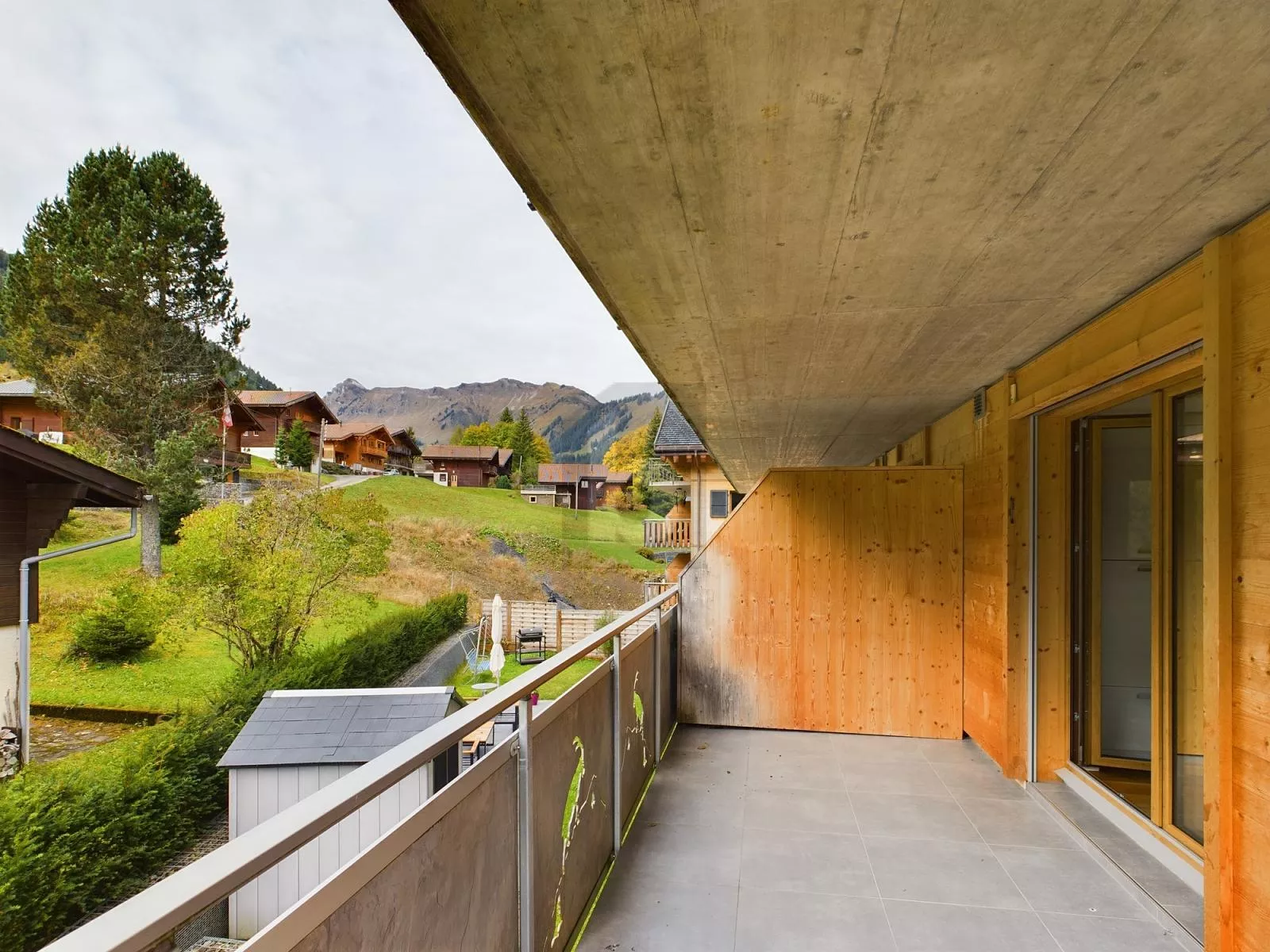 - balcon donnant vue sur les remontrées mécanique, la forêt et les montagnes