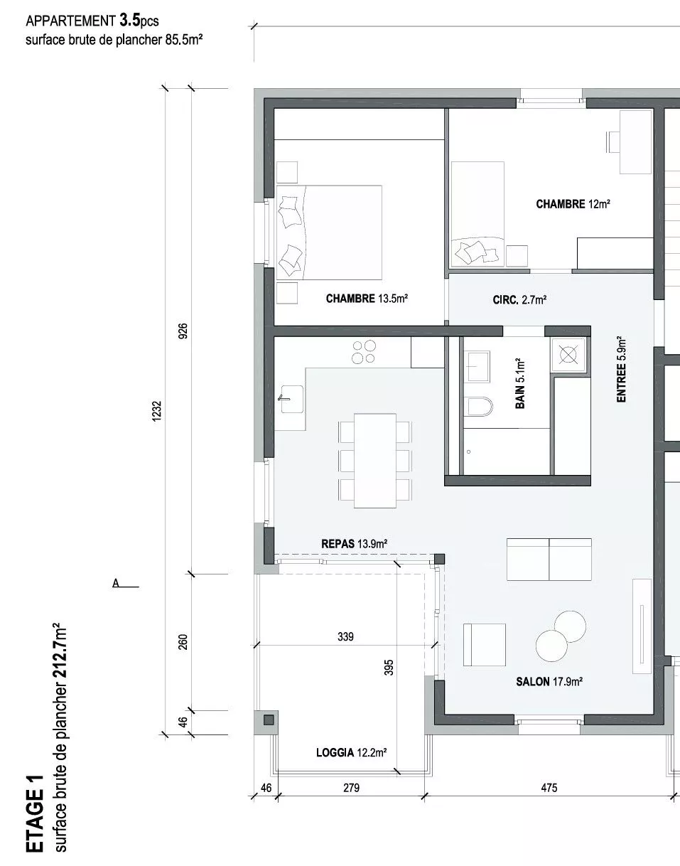 Rez supérieur : 3,5 pces à Chf 525'000.00Attique : 3,5 pces à Chf 545'000.00