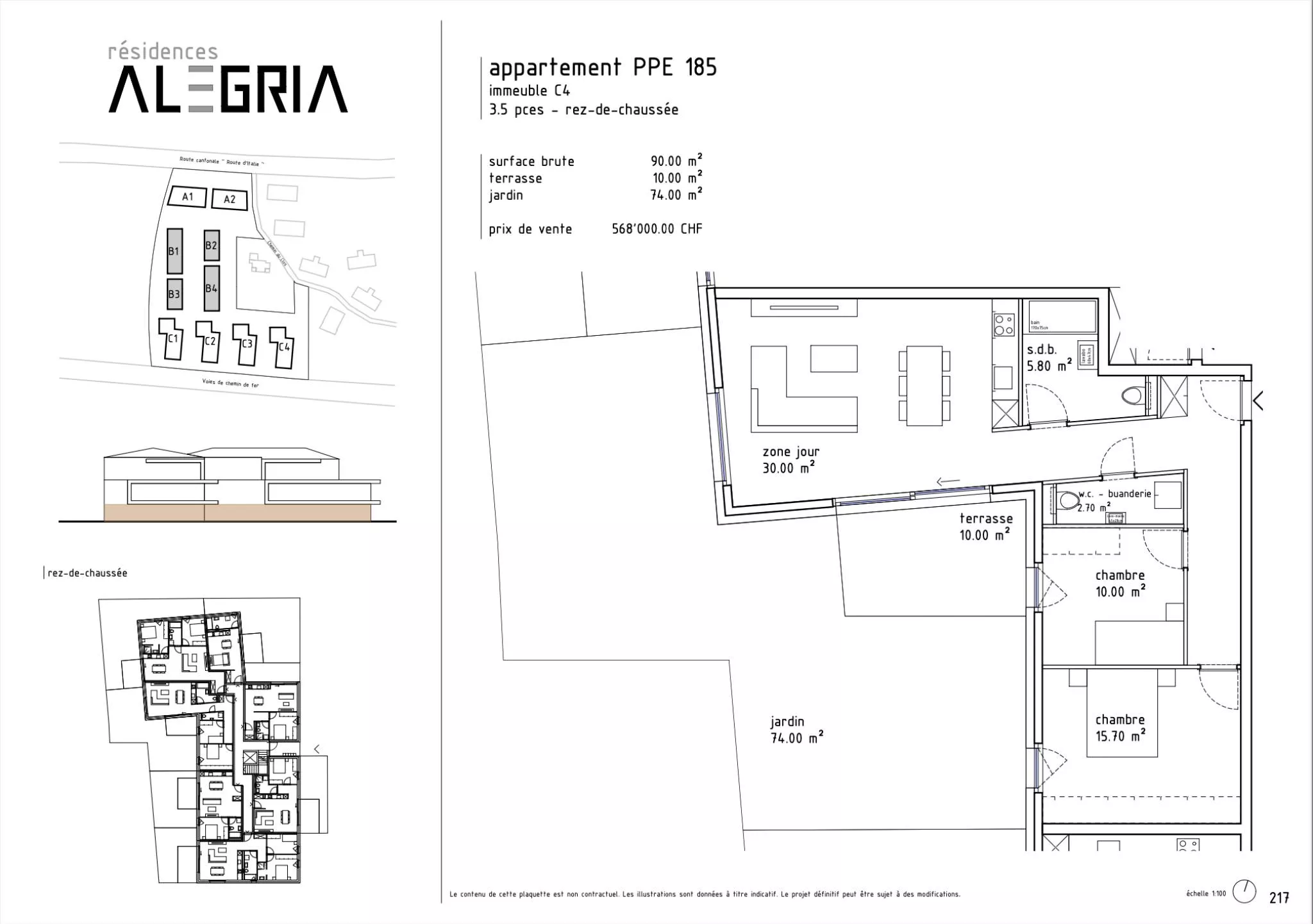L'appartement numéro 185 au bâtiment C4, bénéficie de :