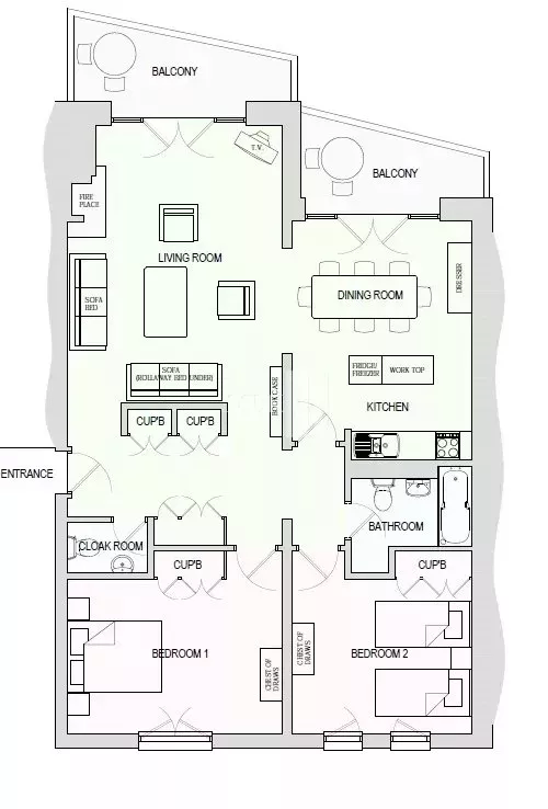 Cet appartement traversant entièrement meublé et agréablement agencé comprend :