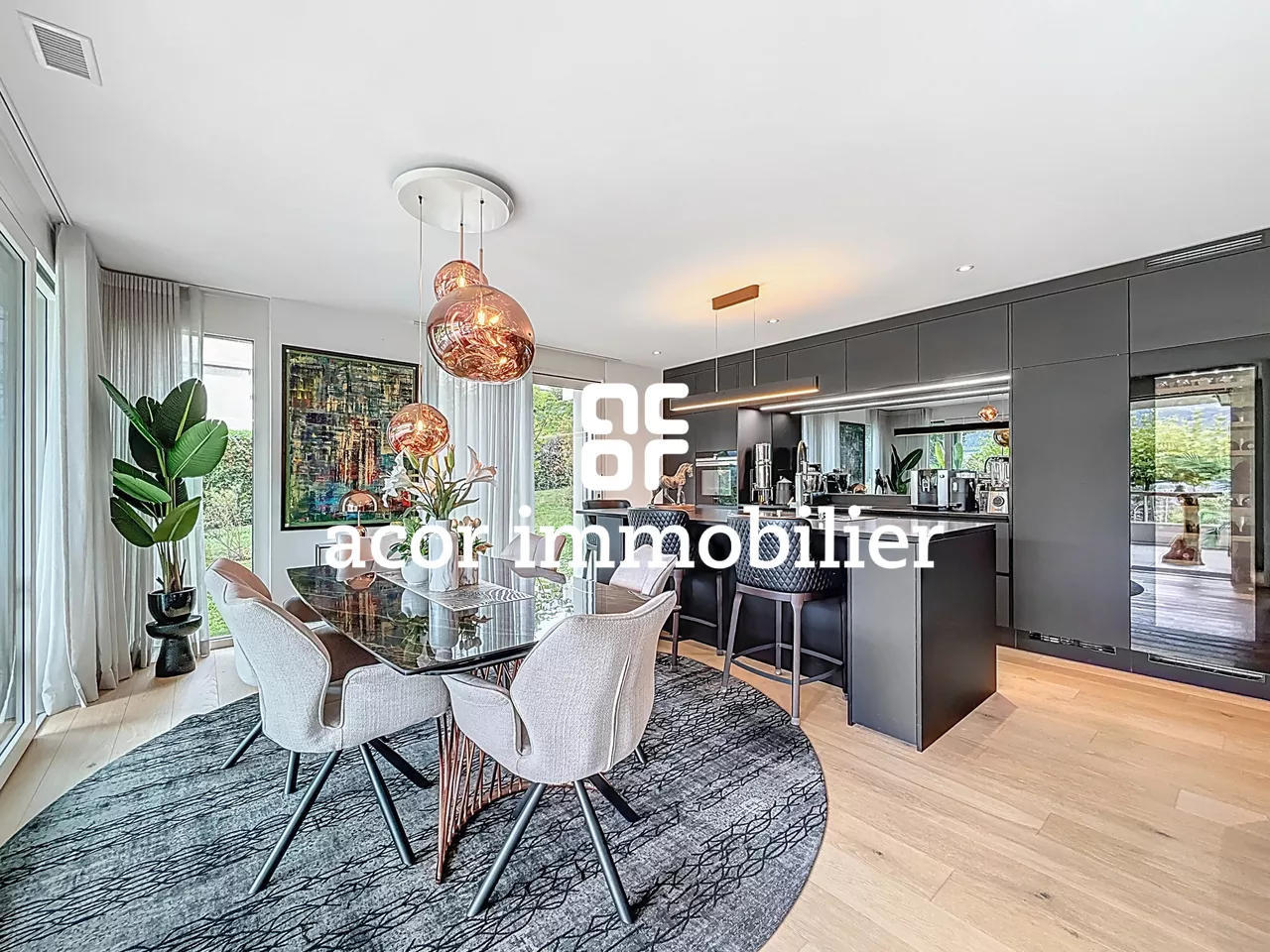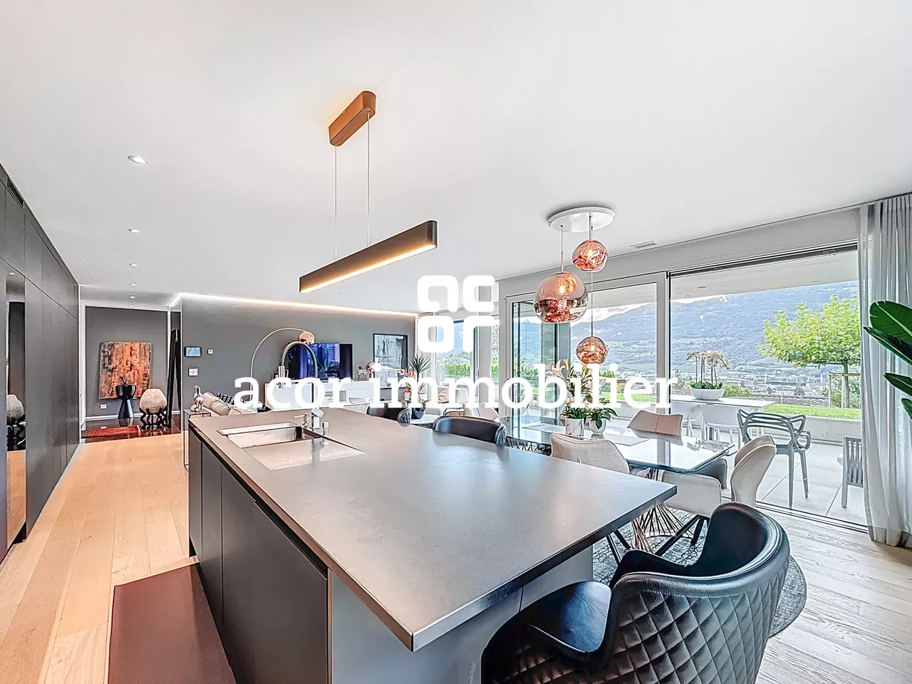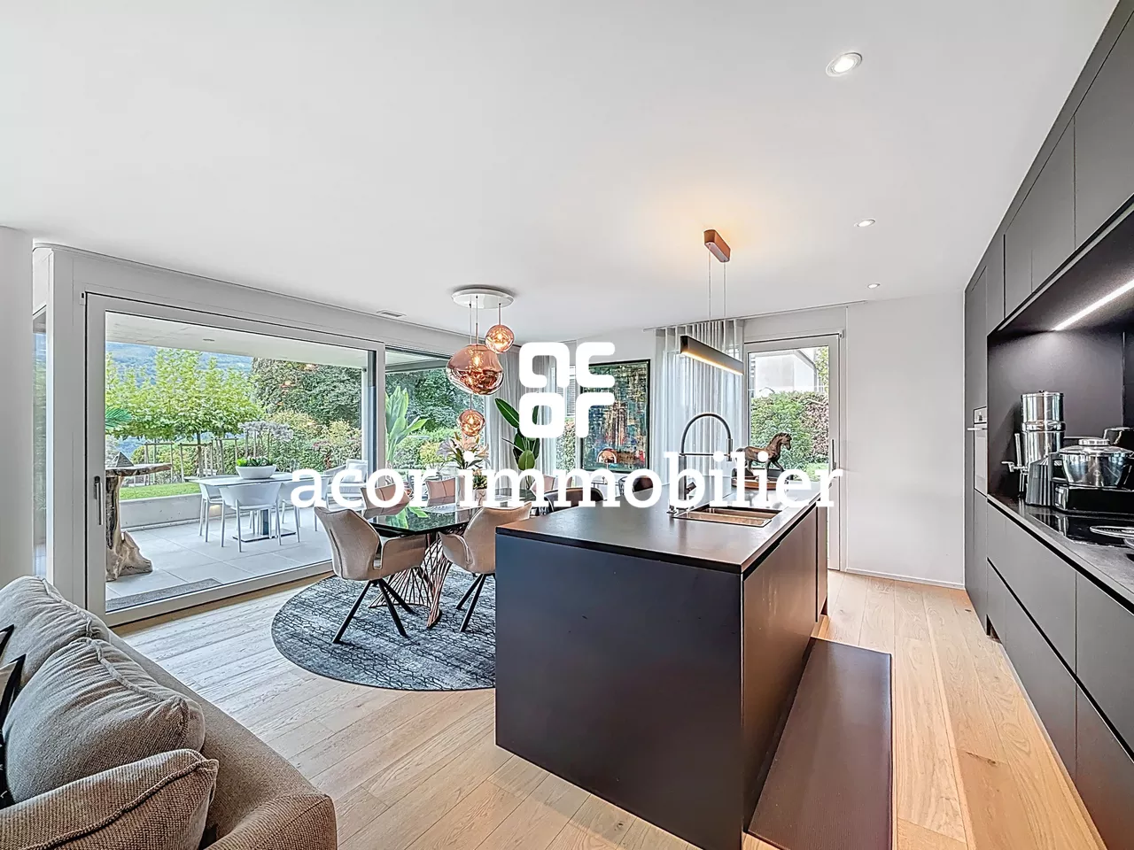 - Un vaste séjour largement vitré, offrant luminosité et confort grâce à des baies en triple vitrage finition bois