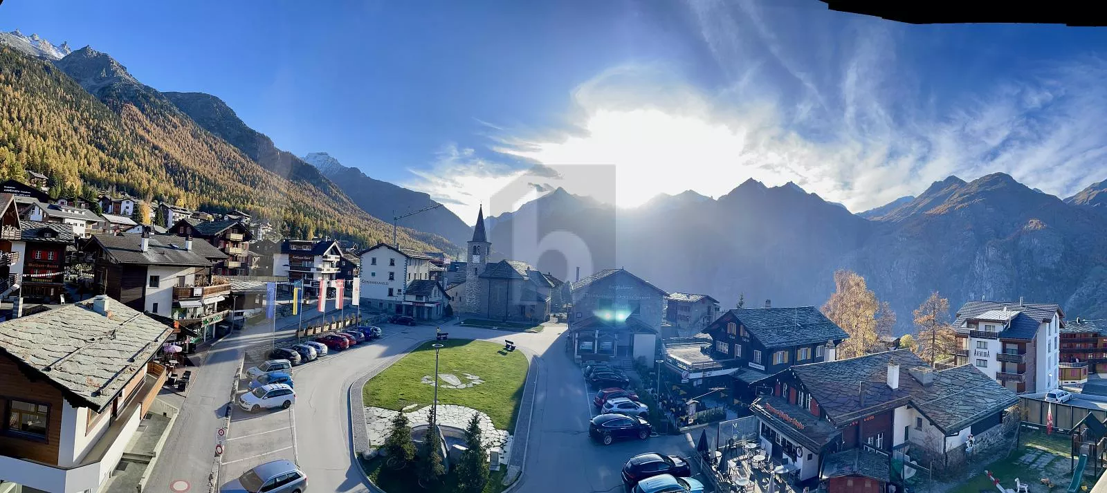 Lage: Zentral am Dorfplatz gelegen mit eigenen Innenparkplätzen. Ganzes Jahr über leicht erreichbar. Saas-Fee und Zermatt sind in nur wenigen Fahrminuten erreichbar.