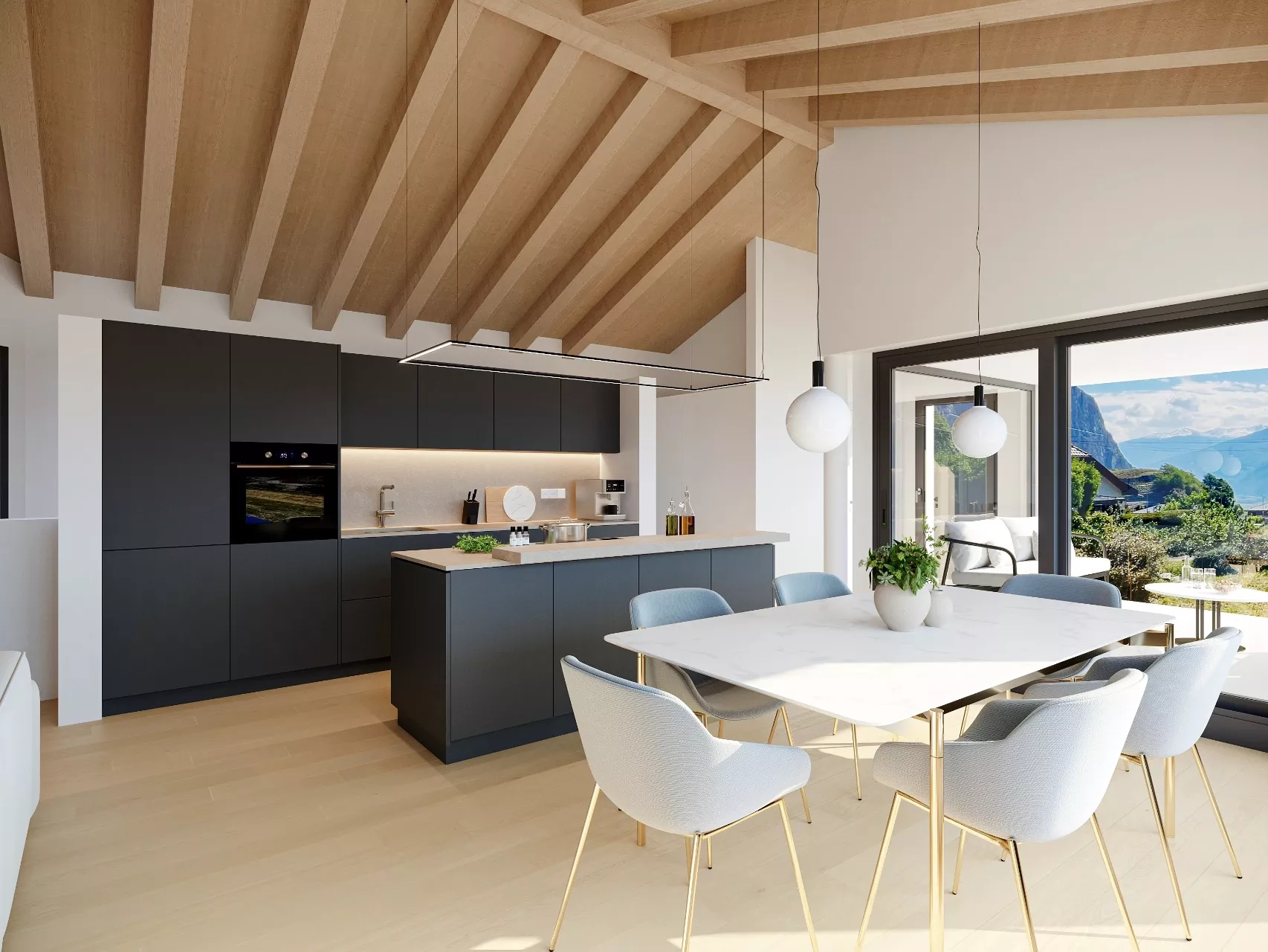 - Cuisine ouverte sur le séjour/salle à manger (finitions aux choix du preneur);