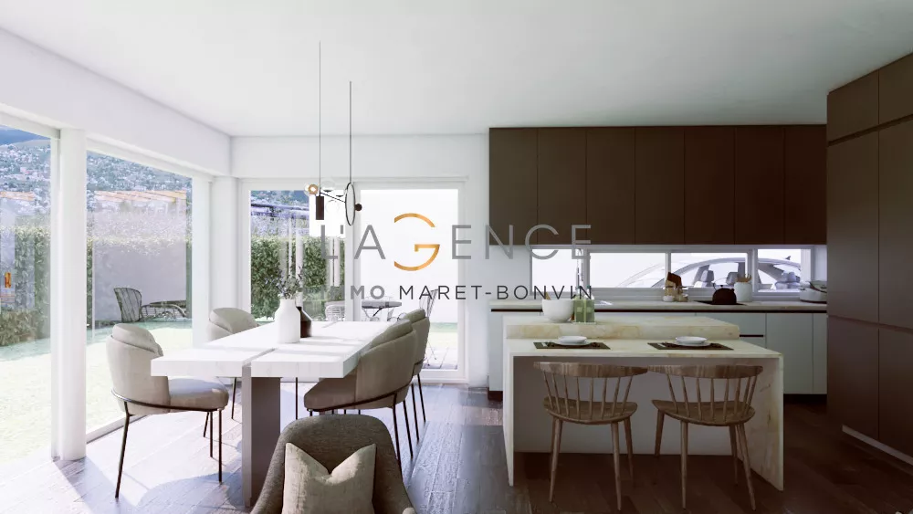 Découvrez cette superbe villa contemporaine de 5,5 pièces, idéalement située dans un quartier résidentiel recherché de Bramois, commune de Sion.
