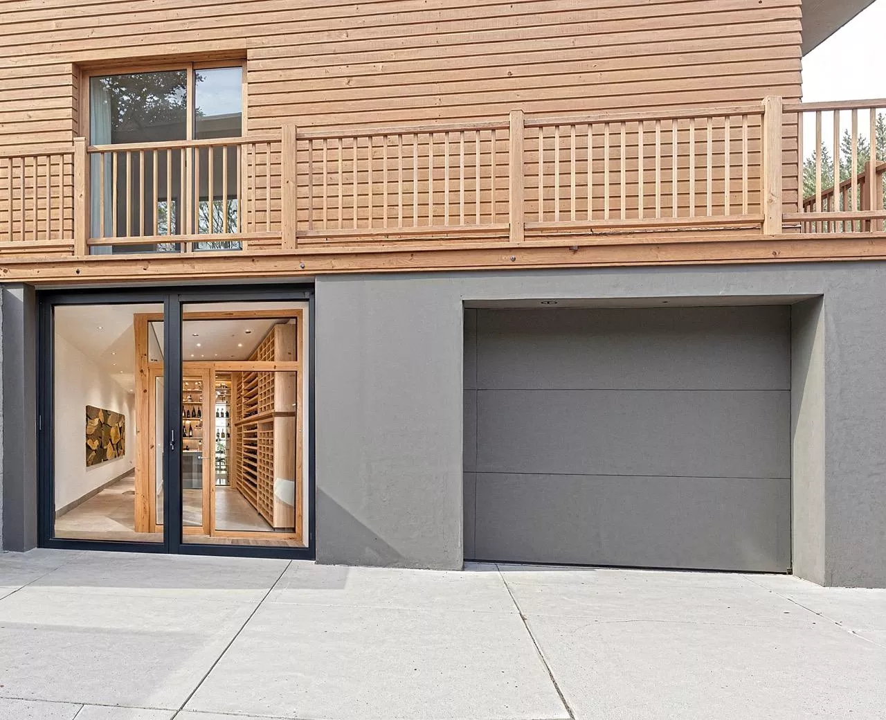 - Au rez-de-sous-sol se trouvent un garage de 24,5 m², un sauna de 4 m², une salle de sport de 15,3 m² ainsi qu'une buanderie de 7,8 m².