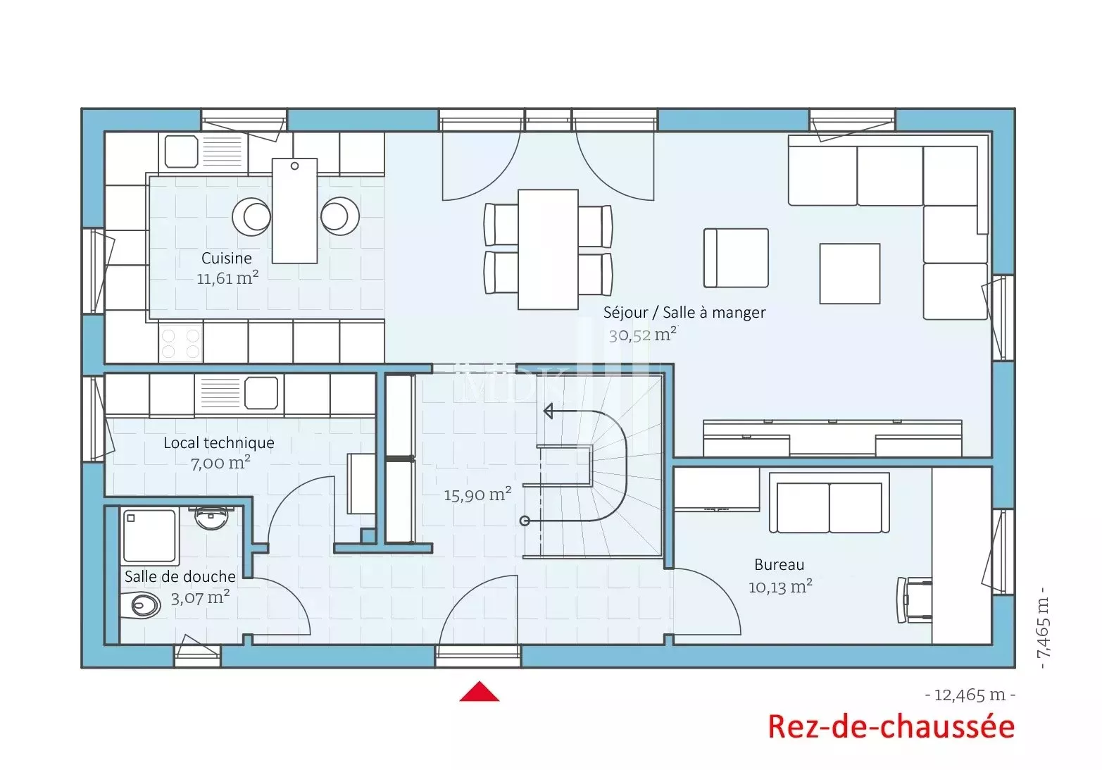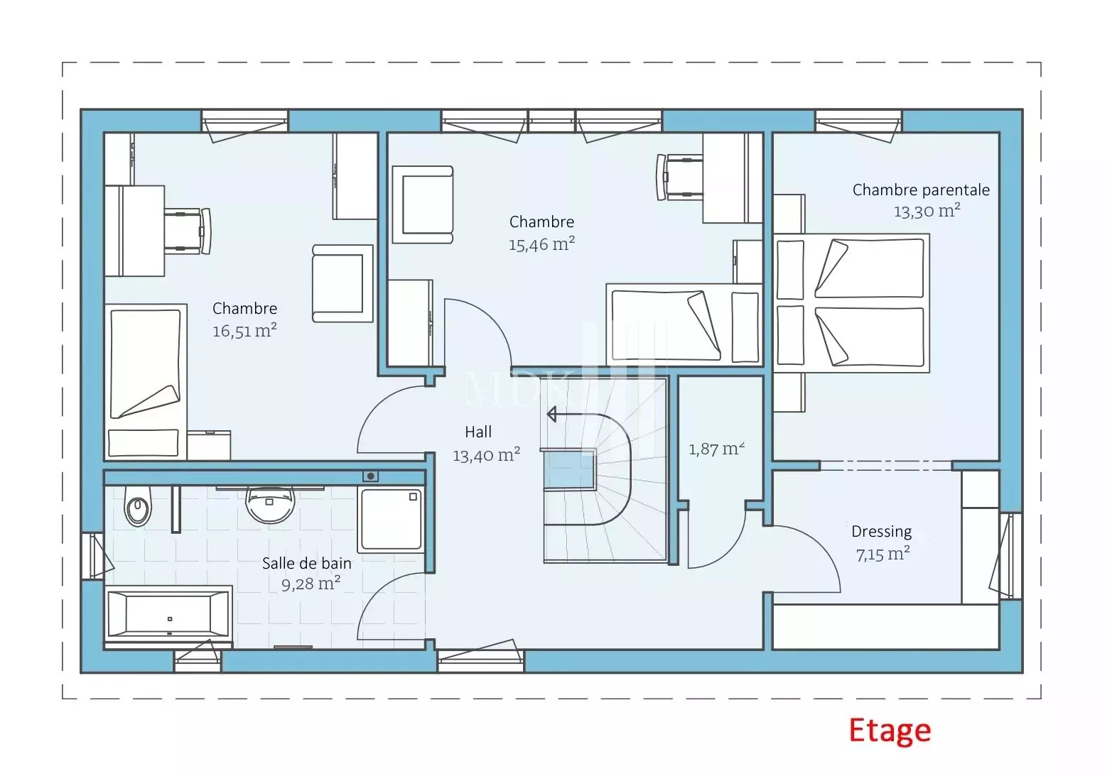 - une salle de bains (baignoire, douche, wc et lavabo)