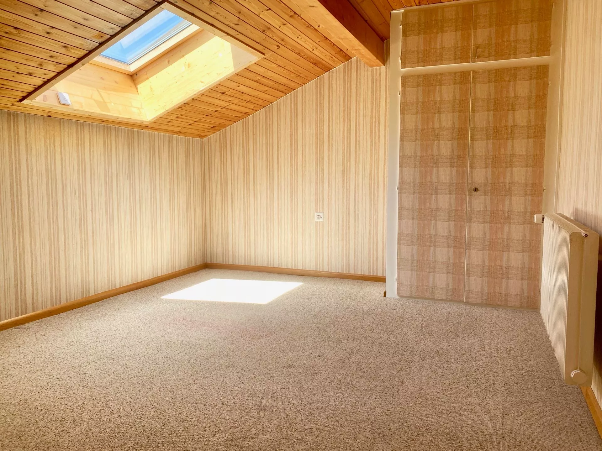 - Étage supérieur (partie nuit) : deux chambres avec armoires encastrées, une chambre avec espace de rangement attenant, salle de bain avec WC (sans douche mais prêt pour installation).