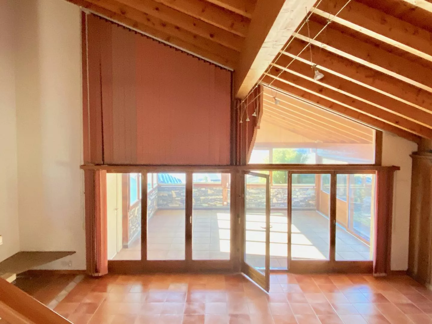 Édifiée avec des matériaux de qualité, béton, bois, pierre de vigne, la maison séduit dès l'entrée par ses espaces généreux et sa magnifique hauteur sous toiture, mettant en valeur une charpente apparente d'une grande élégance. Au centre, la vaste pièce de vie - salon, salle à manger et cuisine - rayonne de luminosité grâce aux baies vitrées et à un superbe jardin d'hiver ouvrant sur la plaine du Rhône (ouest), les pistes de ski de Veysonnaz et Nendaz (au sud) et la nature environnante (nord/est).
