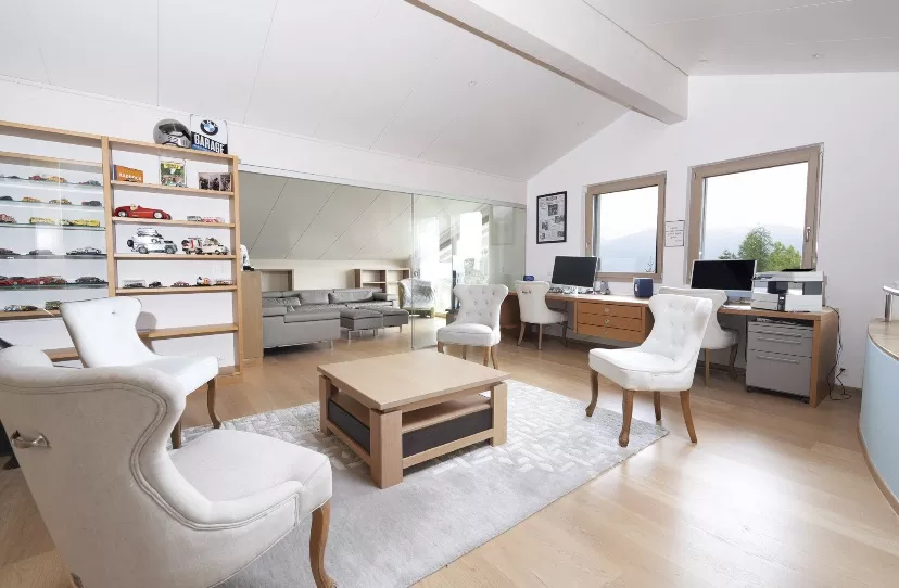 Ce bien séduit tant par ses volumes généreux, sa luminosité omniprésente que par son environnement paisible et privilégié. Une résidence pour les amoureux de la nature à la recherche de calme et de raffinement, ou un lieu de vie principal où il fait bon se ressourcer, été comme hiver.